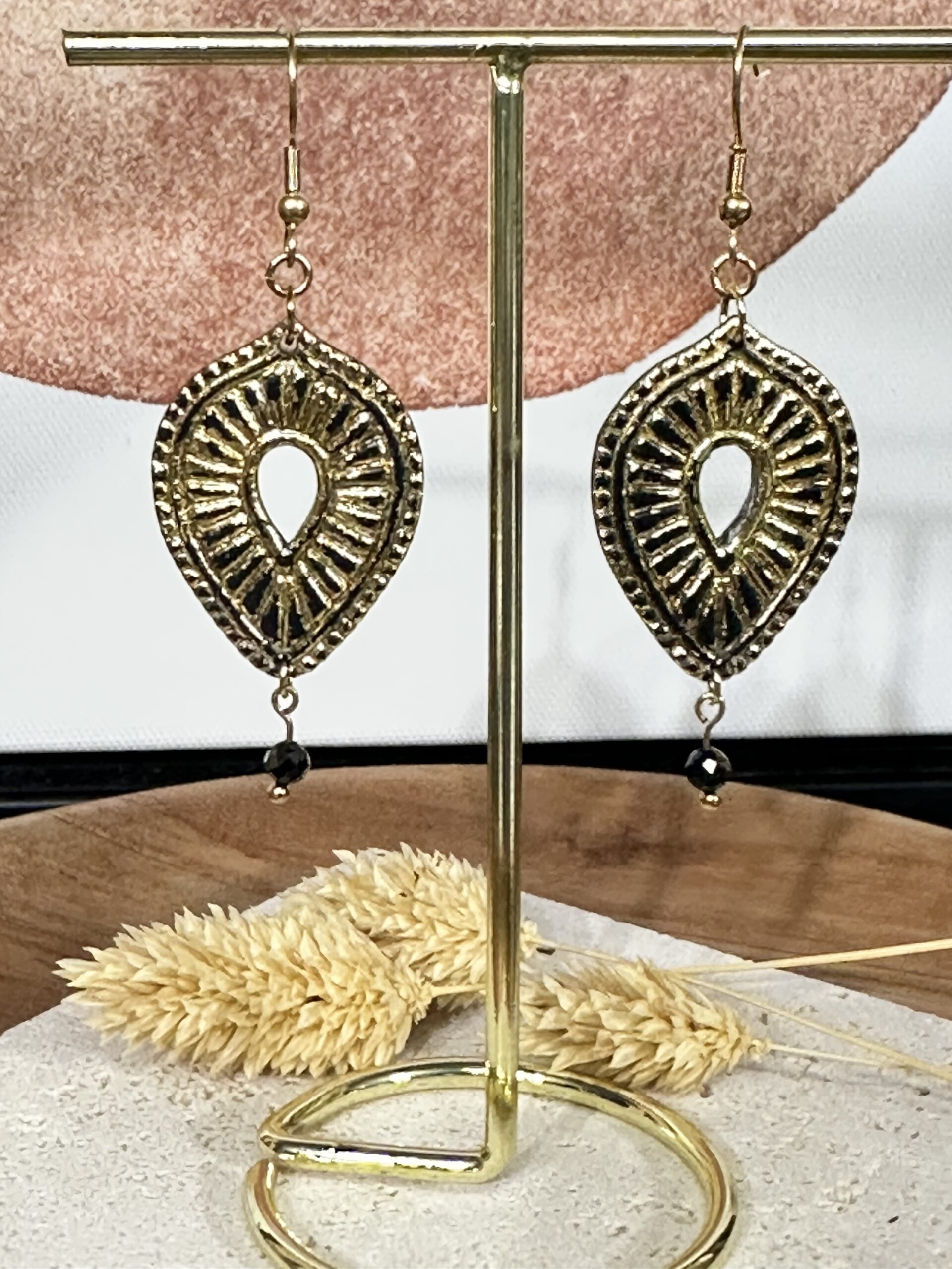 •  ✨ MatĂ©riaux : Attaches en acier inoxydable plaquĂ© or. Argile polymère rĂ©sinĂ©e sur la face arrière. Devant satinĂ©