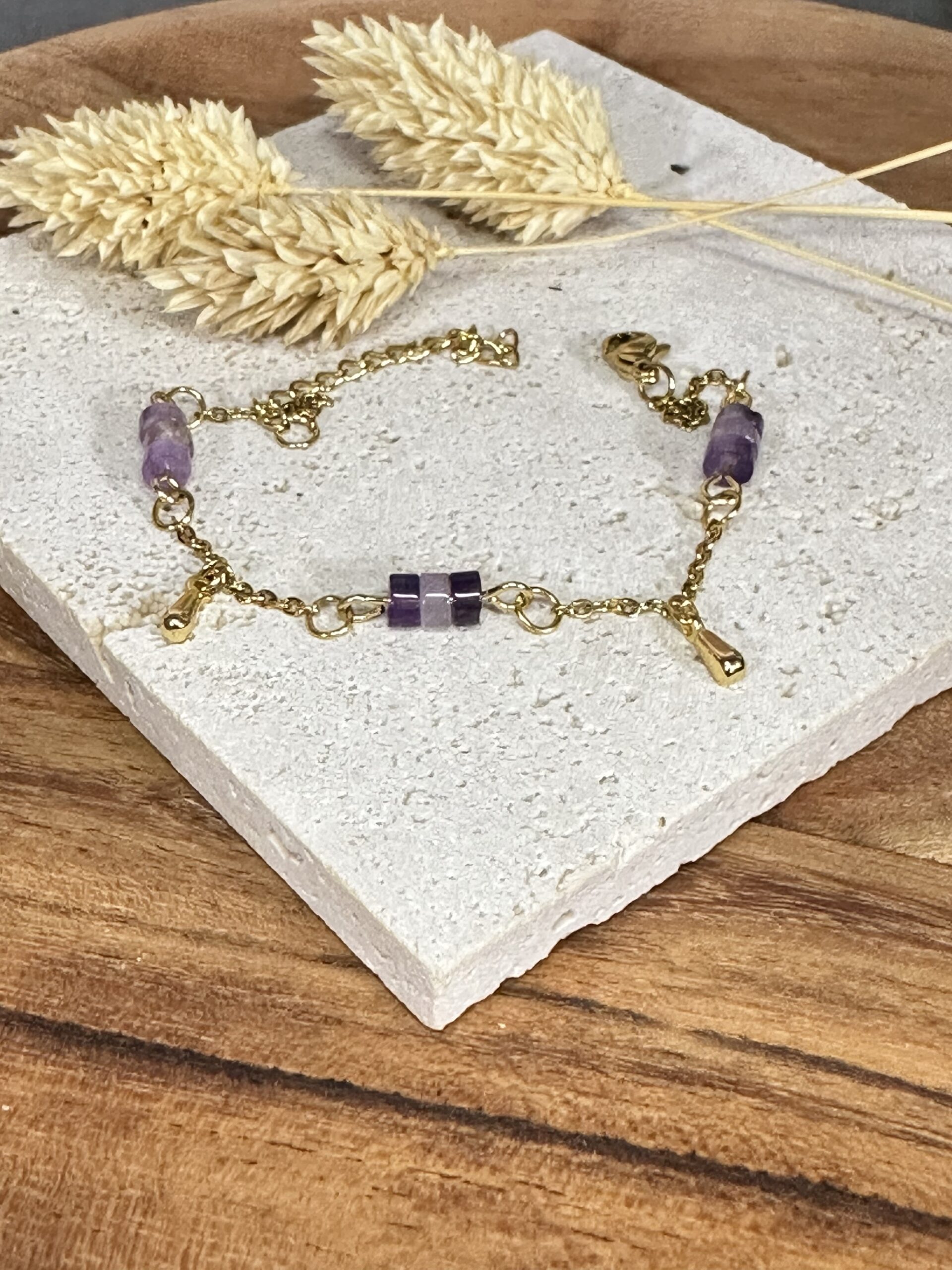 Soyez le premier à laisser votre avis sur “Bracelet améthyste & gouttes dorées”