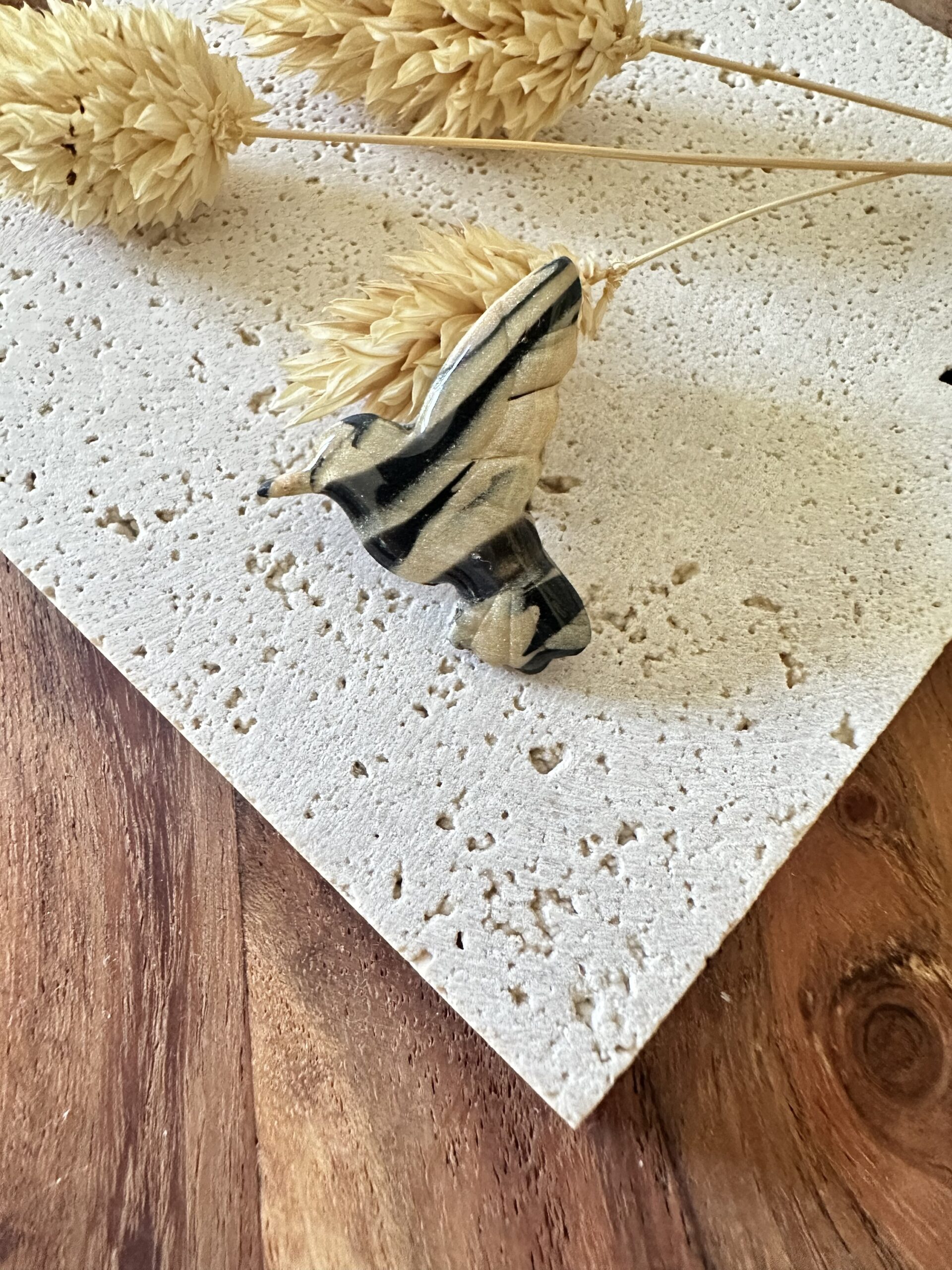 Broche colibri marbré noir & beige
