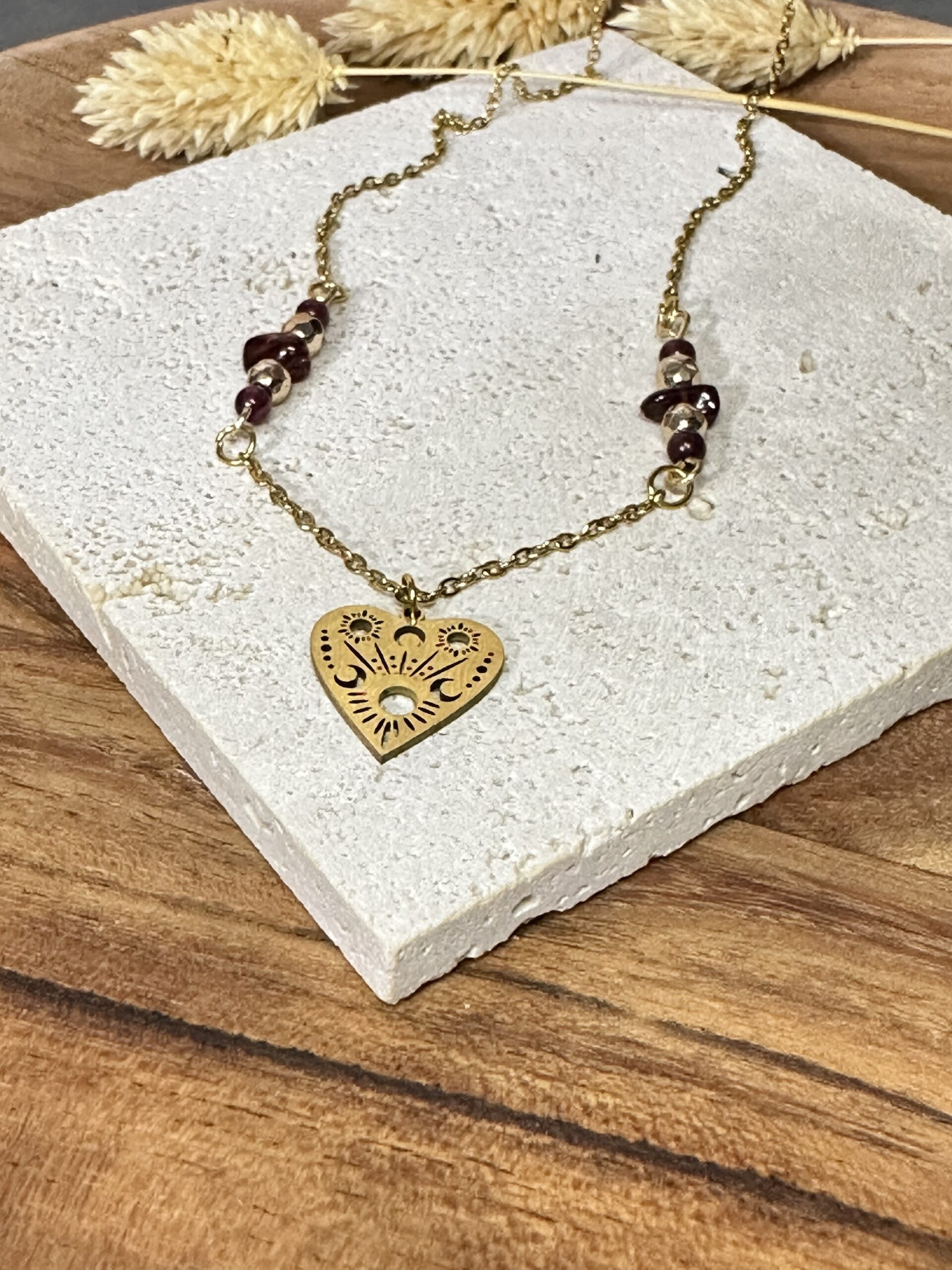 Collier coeur lunaire & grenat