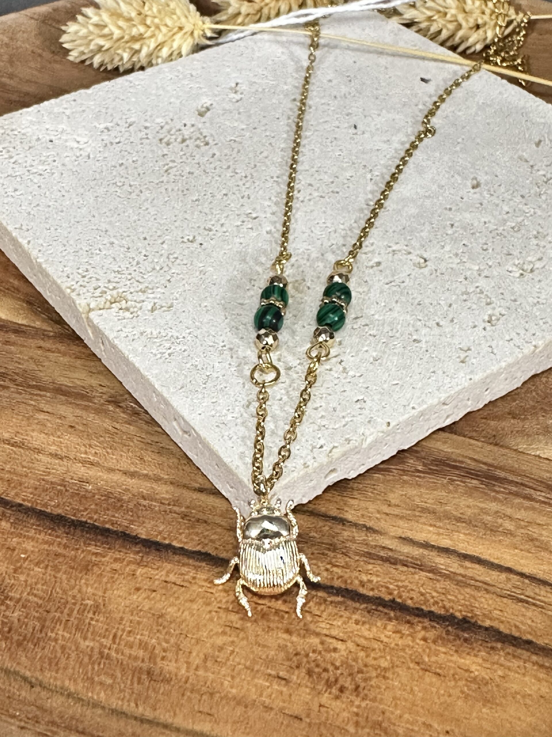 Collier scarabée doré & malachite