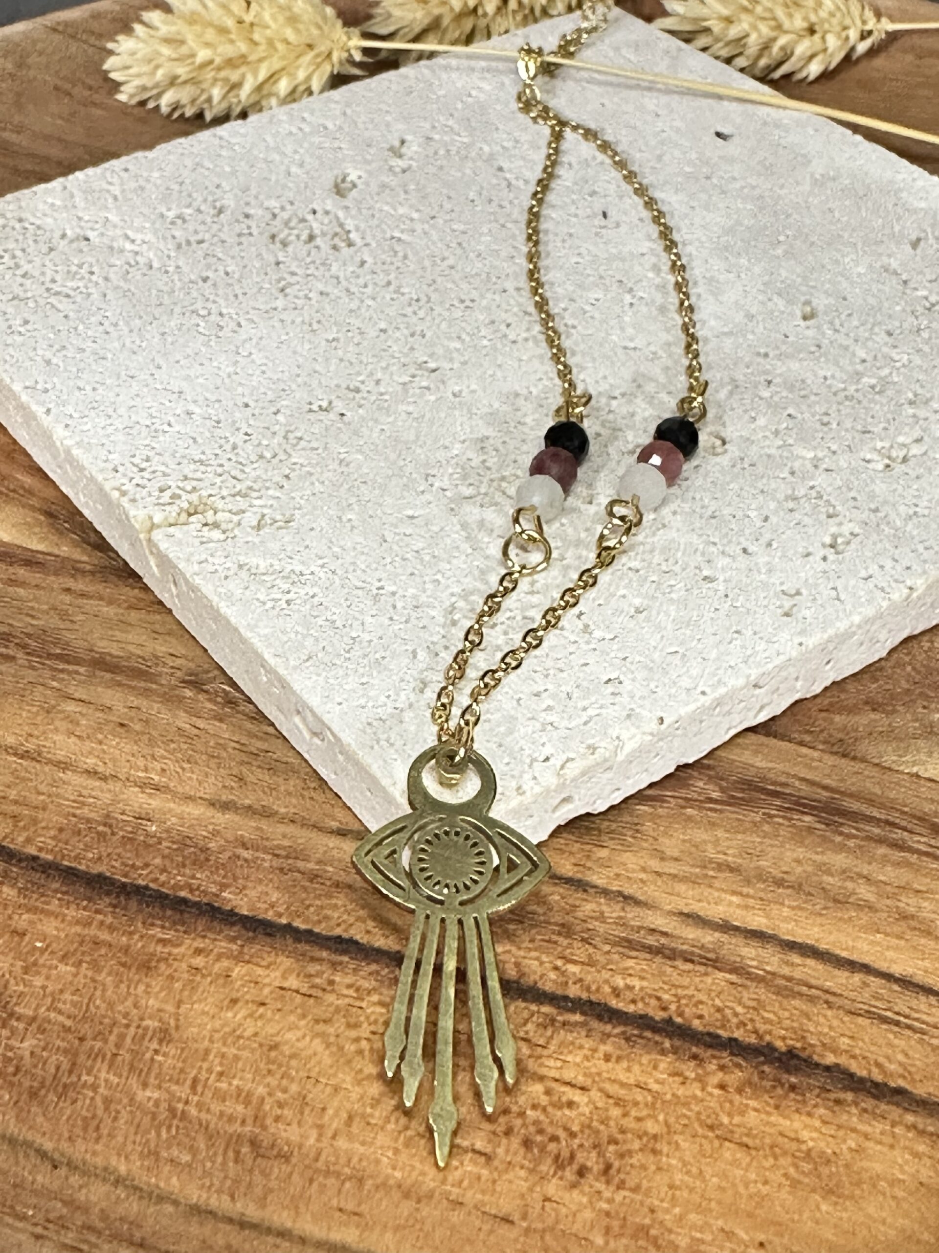 Collier oeil doré & tourmaline
